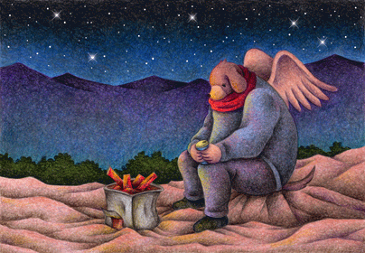 Angel Dog - 天使犬(色鉛筆画) - 「寒い夜」