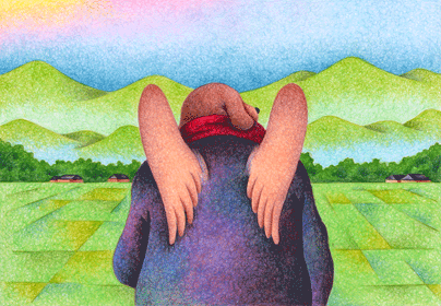 制作技法 色鉛筆で作画(円ストローク法)、作画後Photoshopでカラー調整。