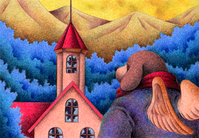 Angel Dog - 天使犬(色鉛筆画) - 「赤い屋根の家」
