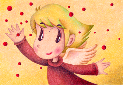 天使のイラスト(色鉛筆画) - 「赤いビー玉」