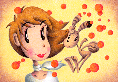 その正体は縞々の耳からオレンジ色のシャボン玉を出すウサギの妖精。