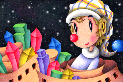 道化師の絵 「ロマンティック・ピエロ - 積み木の街」