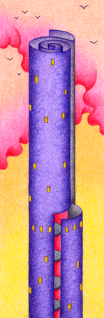 一見、大きな紙を巻いたものを縦にしただけのような塔。