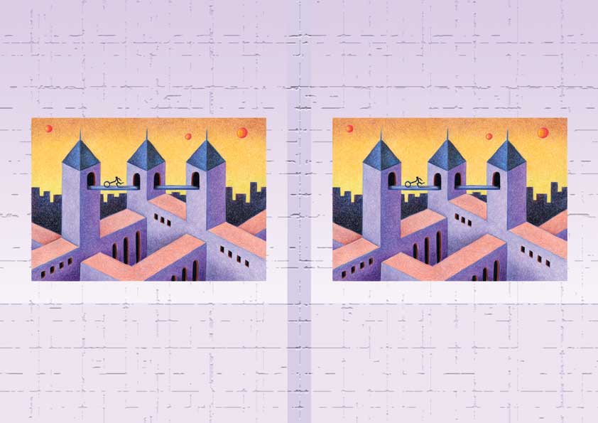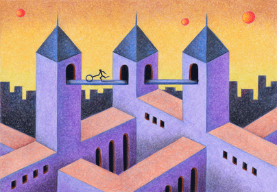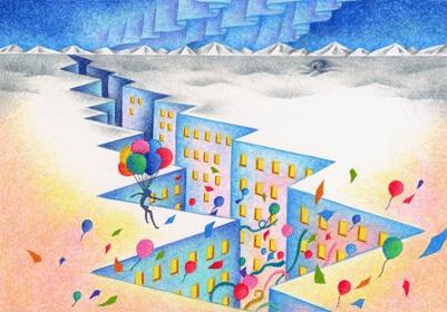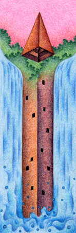 建物イラスト(トリックアート) - 「歪んだ空間の塔」