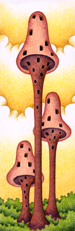 樹木の幹が本体になっている建物。地中からの養分を吸って成長を続ける。