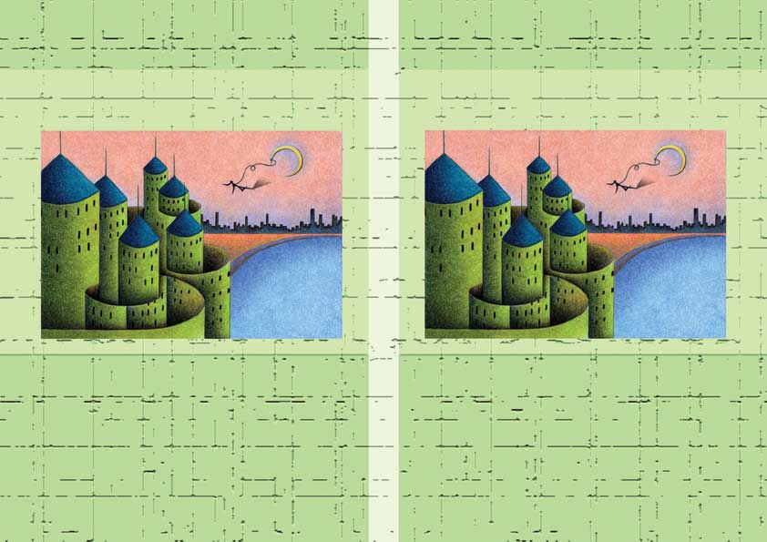 建物イラスト(トリックアート) - 「湖畔の古城」