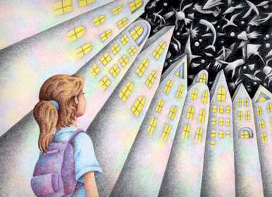 水彩・油彩色鉛筆(円ストローク法)で制作後、Photoshopで加工・原画B4サイズ