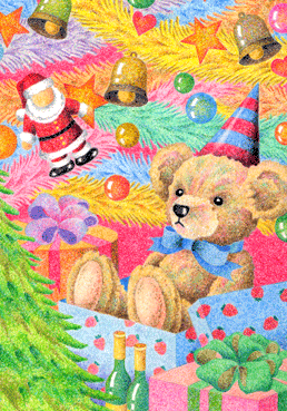 プレゼントのテディベア。既に箱から出て、クリスマスの日を待っているところ。