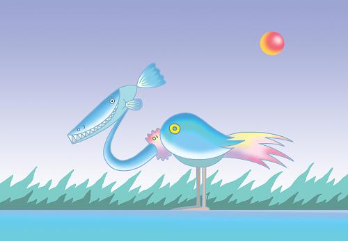 シンプル系メルヘンイラスト - 「魚顔の鳥」