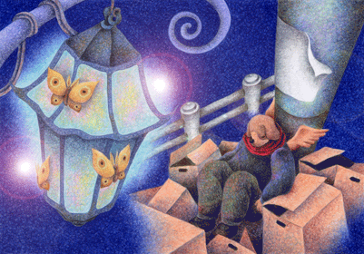 Angel Dog - 天使犬(色鉛筆画) - 「街灯の明り」