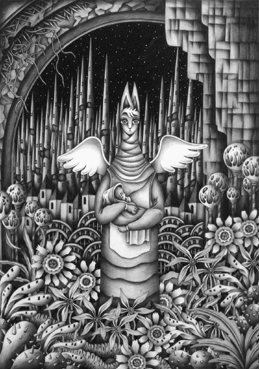 モノクロームイラスト(鉛筆画) - 「猫天使」