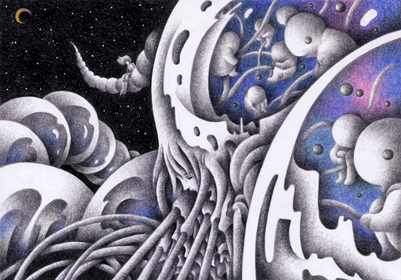 色鉛筆(円ストローク法)で制作後、Photoshopで加工・原画A4サイズ