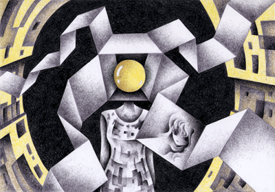 色鉛筆(円ストローク法)で制作後、Photoshopで加工・原画A4サイズ