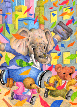 動物イラスト 「会社に向かう象・熊・モグラ」