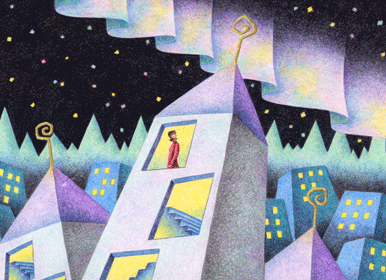 ファンタジーイラスト 「オーロラ街」