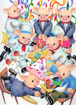 動物イラスト 「ブタが集うレストラン」