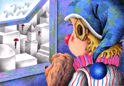 道化師の絵 「ロマンティック・ピエロ(雨降り)」
