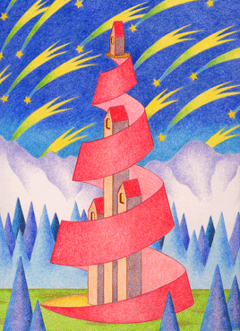 螺旋状の外壁に囲まれた細長い家。この家の上空には常に流れ星が飛び交っている。