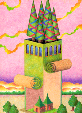 上部に樹木が林立する巨大な建物の壁をめくってみると、そこには2軒の小さな家が存在するだけ。