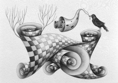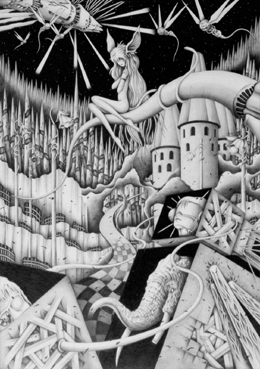モノクロームイラスト(鉛筆画) - 「迷い込んだ異次元世界」