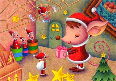 クリスマスイラスト(色鉛筆画) - 「玩具達のクリスマスイヴ」