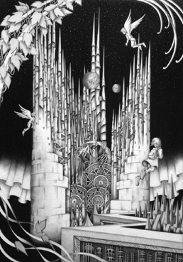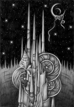 モノクロームイラスト(鉛筆画) - 「夢の世界へようこそ」